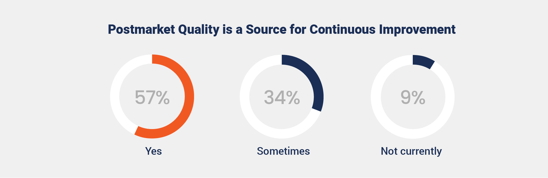 Organizations increasingly recognize postmarket quality as a strategic driver of continuous improvement and risk mitigation. More than half of respondents (57%) report using postmarket quality insights to refine processes, enhance compliance, and identify opportunities for innovation.