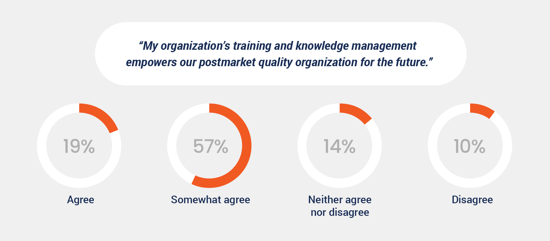 Medtech manufacturers may be recognizing this themselves, as a mere 19% of respondents feel their training programs are sufficient to support postmarket quality for future success, while 57% only ‘somewhat agree,’ further indicating room for improvement.